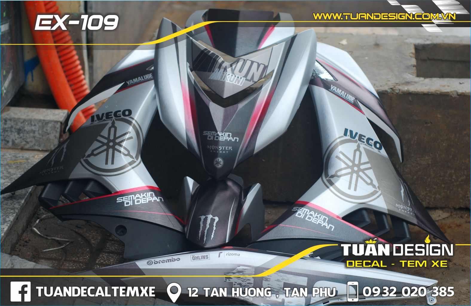 Chào mừng bạn đã ghé thăm trang Web chuyên cung cấp sỉ và lẻ các loại decal, tem trùm, tem chế làm đẹp cho xe máy, xe tay ga đời mới - Đặc biệt hơn chúng tôi có dịch vụ: Thiết kế theo yêu cầu, gửi bản in trước khi thi công,..